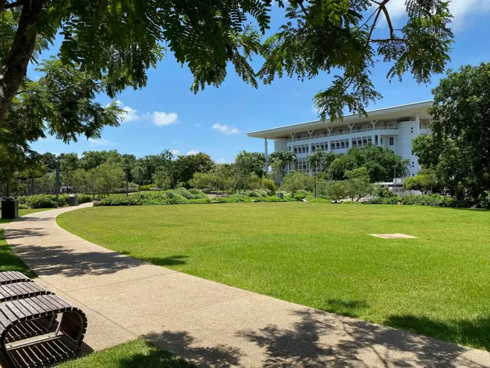 Landscaping of lush green pedestrian friendly gardens with scope for a community public event location existing above the 450 bay underground car park.