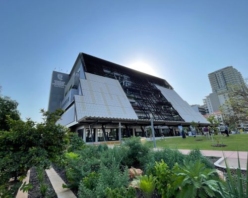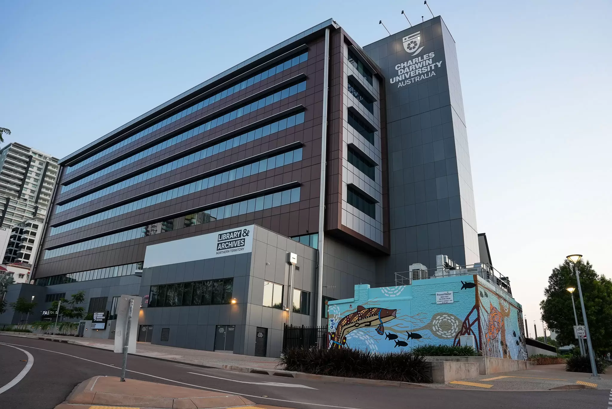 8 storey Modern City Campus built to provide innovative teaching and learning spaces for Charles Darwin University including a new home for the Northern Territory Library